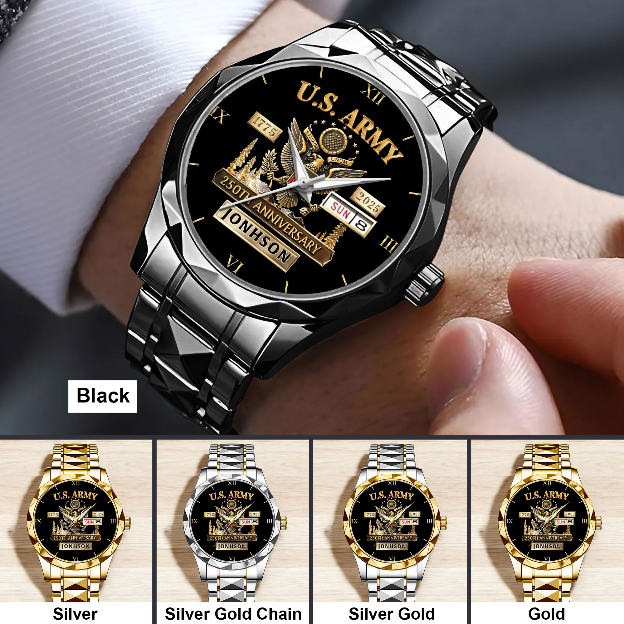 – Multiple Color Options: Available in 5 elegant color variants – Gold, Black, Silver, Silver with Gold Chain, and Silver Gold – to match your personal style.
