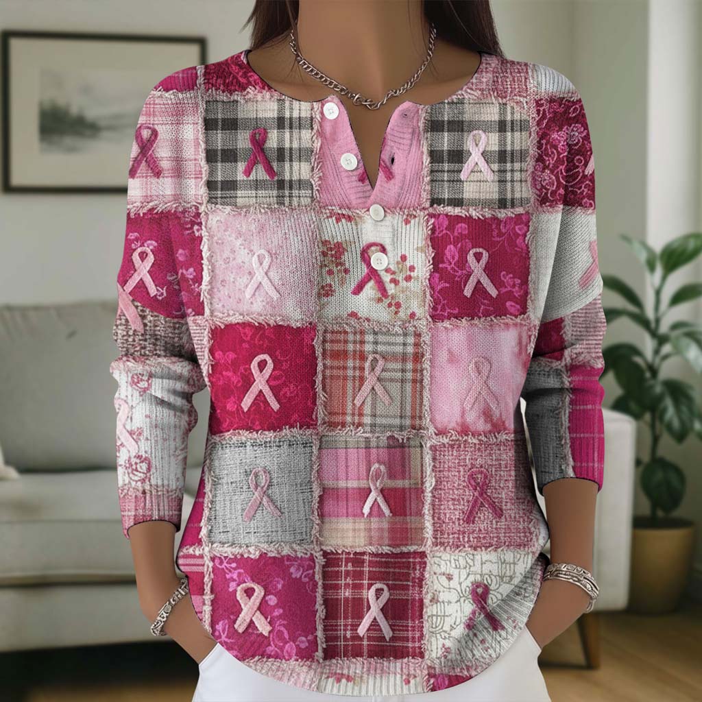 Breast Cancer Buttoned Cardigan Sweater QFTD5111001