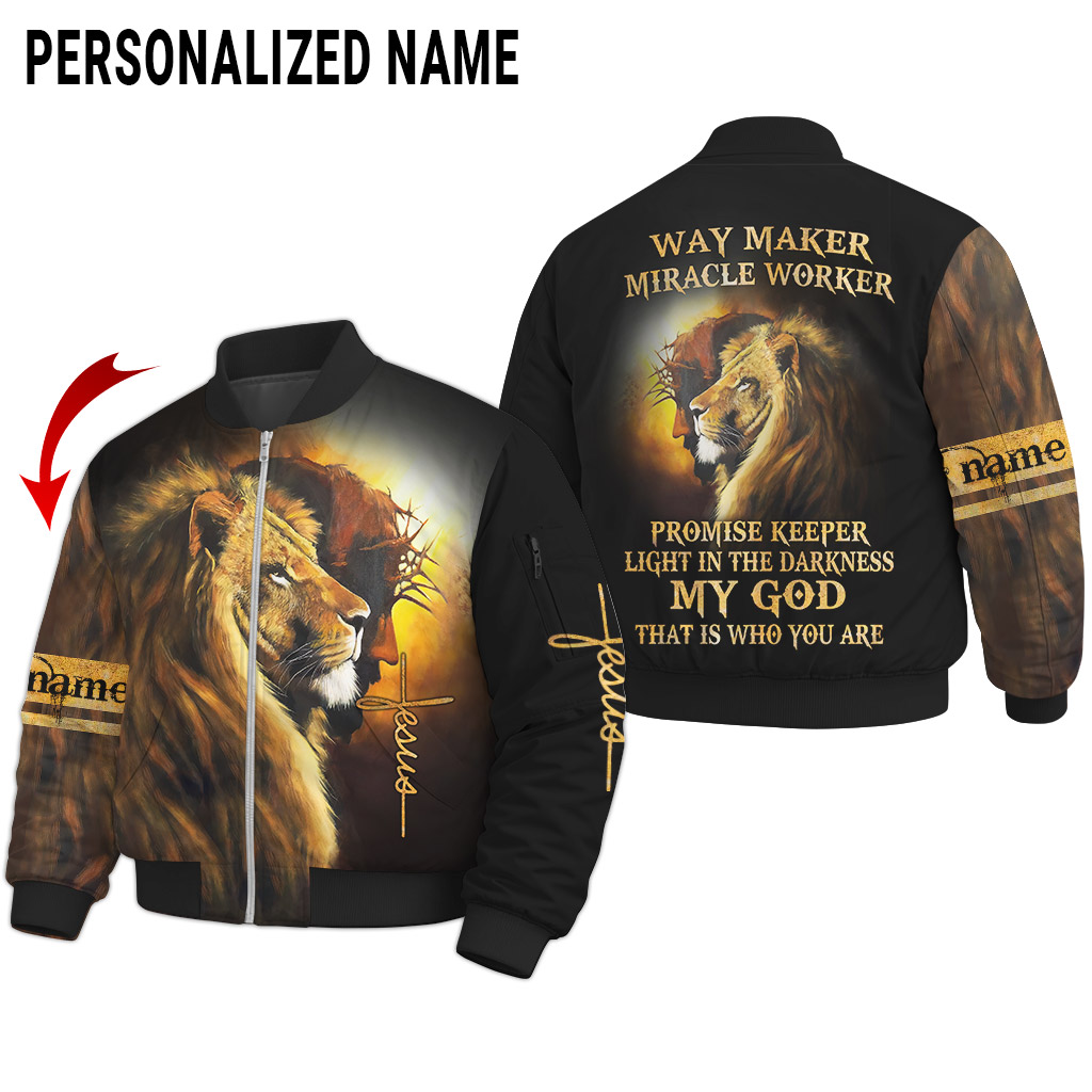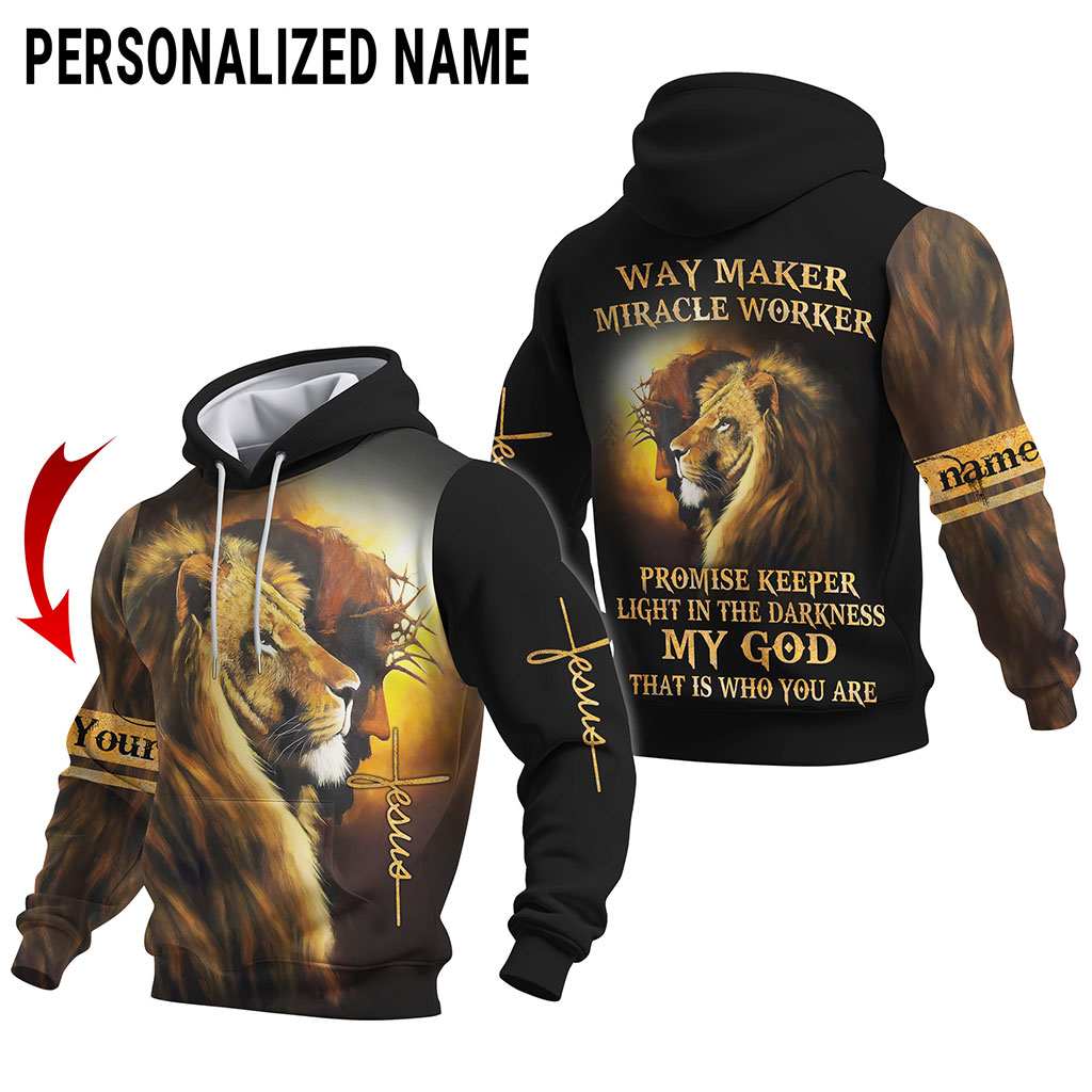 Custom Name Lion Cross Light Way Maker Miracle Worker Jesus 3D All Over Printed Clothes UKKH040502