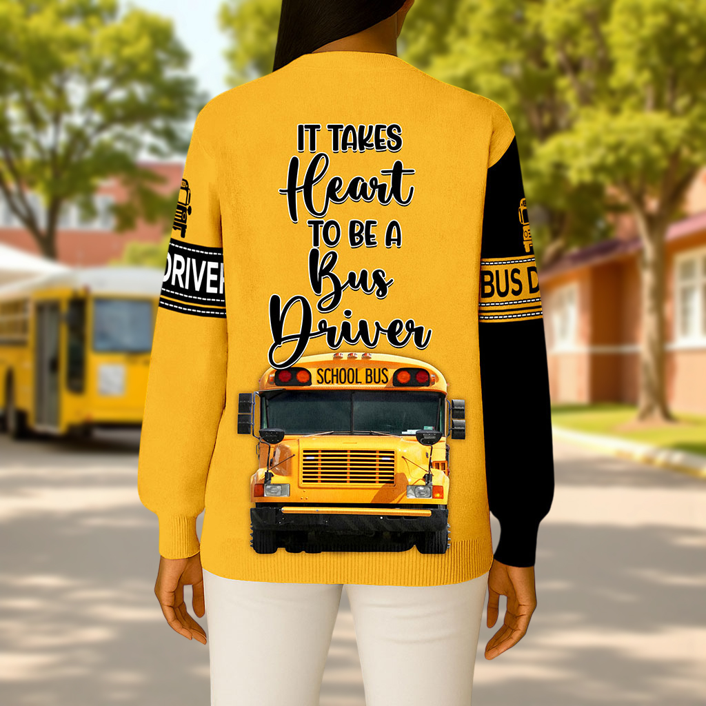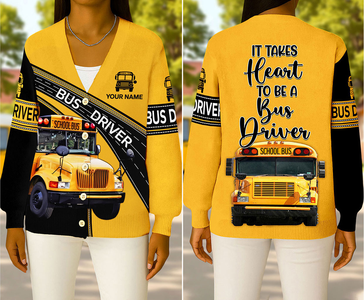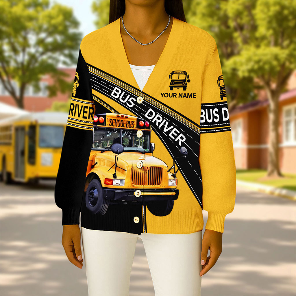 Personalized Name School Bus Driver Knitted Cardigan UKNT5091006